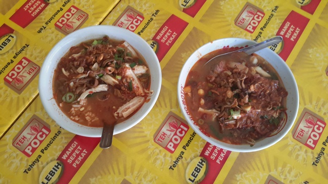 Ada beberapa warung sauto yang enak, beda tempat beda kekhas-annya, itu dikarenakan jenis tauco yang mereka pakai. Nah, yang pertama, usul saya, pergilah ke warung Sauto bernama Pak MADI. Dia terletak di depan Kleteng kota Tegal. Saya memilih sauto campur (ayam dan babat), selalu kalau pesan makanan dimana-mana “tidak pakai micin/sasa/MSG.”