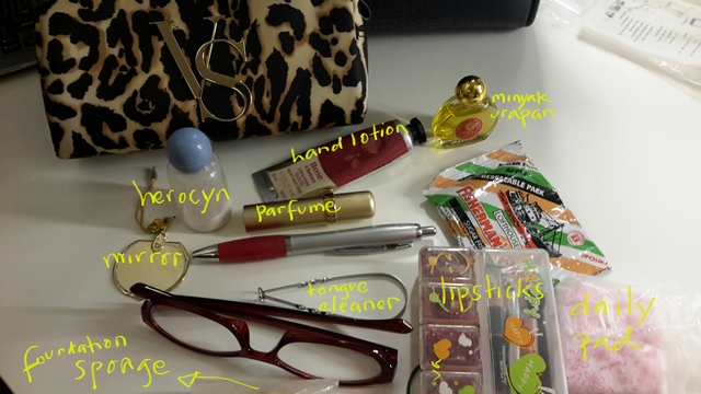 -Lipsticks – sepertinya dia tempat vitamin, tapi saya fungsikan untuk potongan-potongan lipstick yang memang sengaja saya potong-potong daripada bawa besar dan beda-beda, ribet, right!