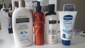 Saya sudah buang atau berikan lotion-lotion yang lain ke orang-orang yang membutuhkan, baik sepupu saya, keponakan, staffs – belum dipakai banyak, tapi mungkin di kulit mereka lebih masuk, we never know khan beda tiap produk. Tapi yang di foto ini yang masih ada dengan saya, dari Victoria Secret, Seven Minerals, Gold Bond, yang kesemuanya tentu saya research (ceilehhh) baik-baik untuk membaca kandungan dan merk dan review... tapi alas, to me they don’t do nothing better, but this last one Vaseline yang jenis ini (sebab banyak jenises ya, jangan keliru). That’s all, folks. Hope you find it good on yours, too.