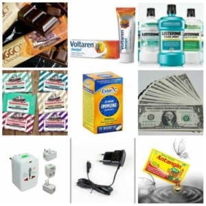 Ini dia hal penting selain Roh Kudus dan Alkitab di hape Anda: Antangin, Listerine, Voltaren, Permen Fisherman, Chocolate, Ester C, Charger hp, Colokan Internasional, CC, cash or $$.